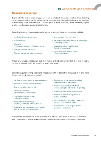 trust; creating value; and moving from a transactional, tactical relationship to one that