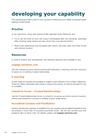 • Try to use the skills on their own buyers immediately after the workshop, debriefing