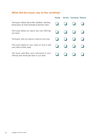 The buyer talked about the weather, families, ❏ ❏ ❏ ❏