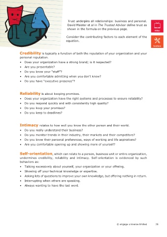 undermines credibility, reliability and intimacy. Self-orientation is evidenced by such