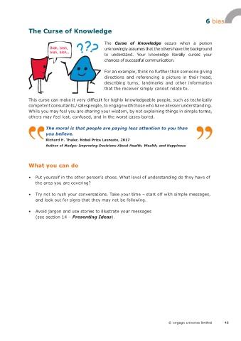 • Put yourself in the other person’s shoes. What level of understanding do they have of