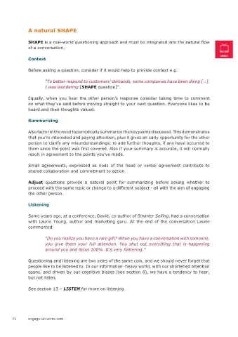 SHAPE is a real-world questioning approach and must be integrated into the natural flow