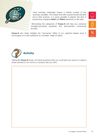 Taking the Focus-5 areas, list below questions that you could ask your buyers to explore
