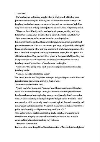 Beatrice takes out a fine gold necklace that consists of flat, neatly twisted pieces