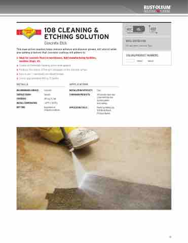 This dual-action solution helps remove laitance and dissolve grease, dirt and oil while also adding a texture that concrete coatings will adhere to.