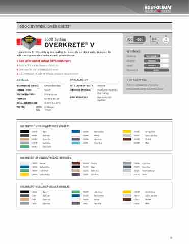 OVERKRETE® V COLORS/PRODUCT NUMBERS:
