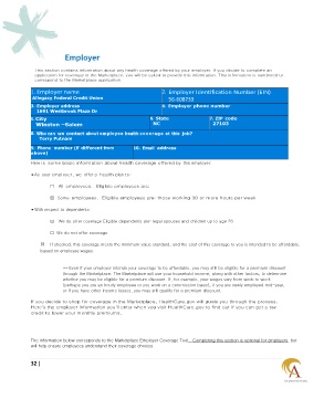 The information below corresponds to the Marketplace Employer Coverage Tool. Completing this section is optional for employers, but