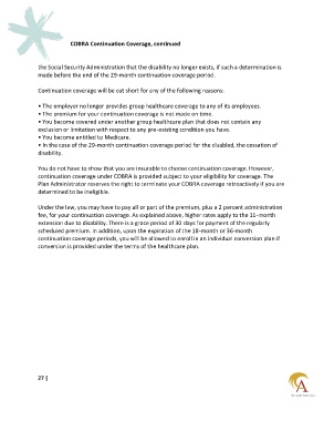COBRA Continuation Coverage, continued