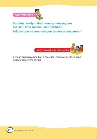 Dengan bantuan orang tua, siswa dapat menukar pecahan uang
