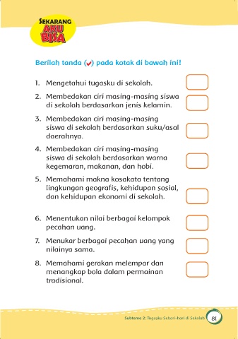 Subtema 2: Tugasku Sehari-hari di Sekolah 81