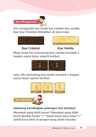 Mula-mula Siti memotong kue cokelat menjadi 2