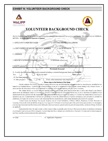 EXHIBIT N: VOLUNTEER BACKGROUND CHECK