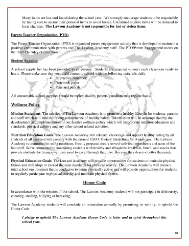 local charities. The Lawson Academy is not responsible for lost or stolen items.