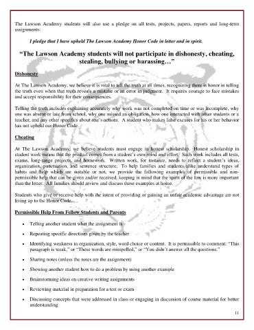 “The Lawson Academy students will not participate in dishonesty, cheating,
