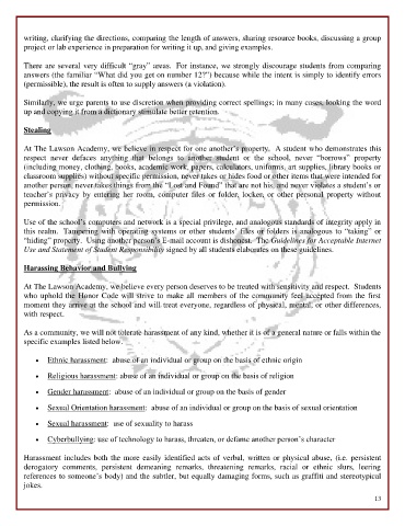 another person, never takes things from the “Lost and Found” that are not his, and never violates a student’s or