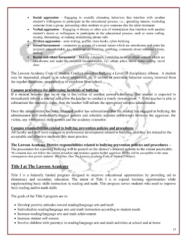 The Lawson Academy District responsibilities related to bullying prevention policies and procedures –