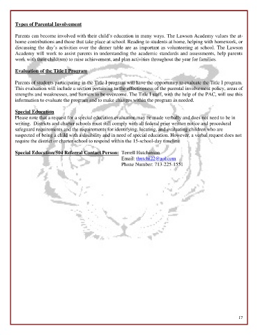 This evaluation will include a section pertaining to the effectiveness of the parental involvement policy, areas of