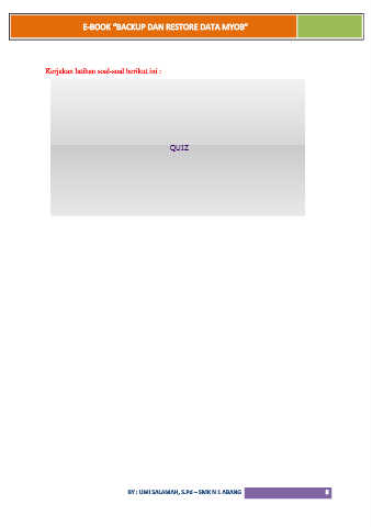 E-BOOK “BACKUP DAN RESTORE DATA MYOB” [ Y e a Kerjakan latihan soal-soal berikut ini : r ] BY : UMI SALAMAH, S.Pd – SMK N 1 ABANG 8