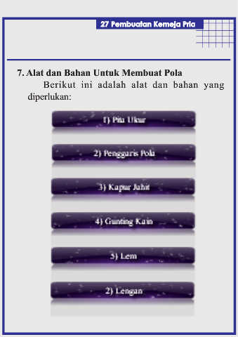 vi Pembuatan Kemeja Pria 27 7. Alat dan Bahan Untuk Membuat Pola Berikut ini adalah alat dan bahan yang diperlukan: