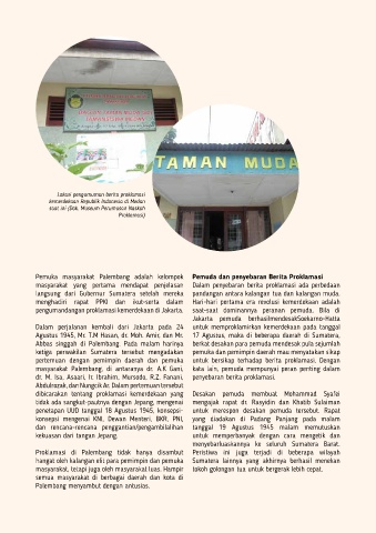 Pemuka masyarakat Palembang adalah kelompok Pemuda dan penyebaran Berita Proklamasi