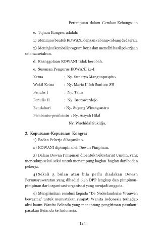 e. Susunan Pengurus KOWANI ke-I