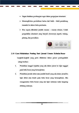• Memungkinkan pembukuan harian dari bukti – bukti pendukung