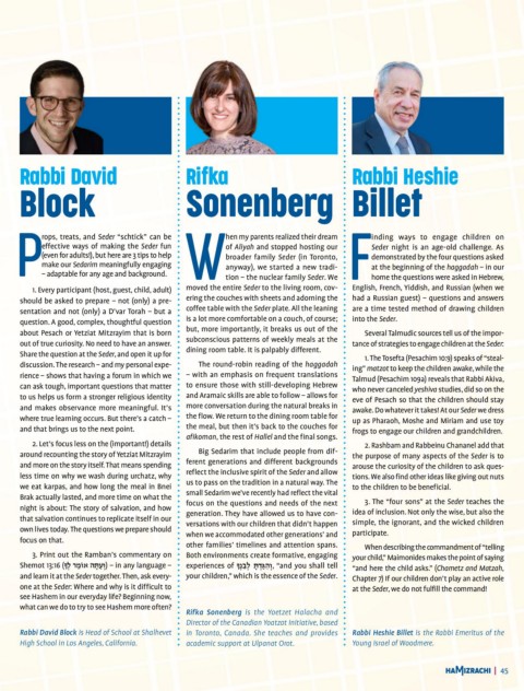 make our Sedarim meaningfully engaging anyway), we started a new tradi- at the beginning of the haggadah – in our