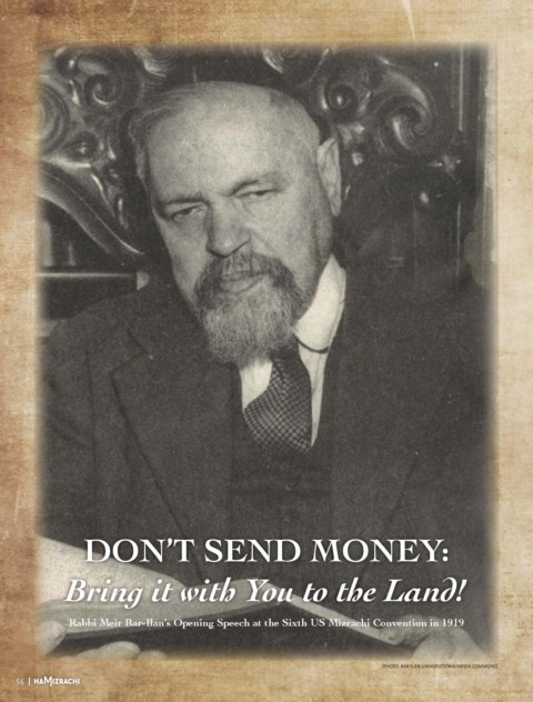 DON’T SEND MONEY: Bring it with You to the Land! Rabbi Meir Bar-Ilan’s Opening Speech at the Sixth US Mizrachi Convention in 1919 (PHOTO: BAR-ILAN UNIVERSITY/WIKIMEDIA COMMONS) 56 |
