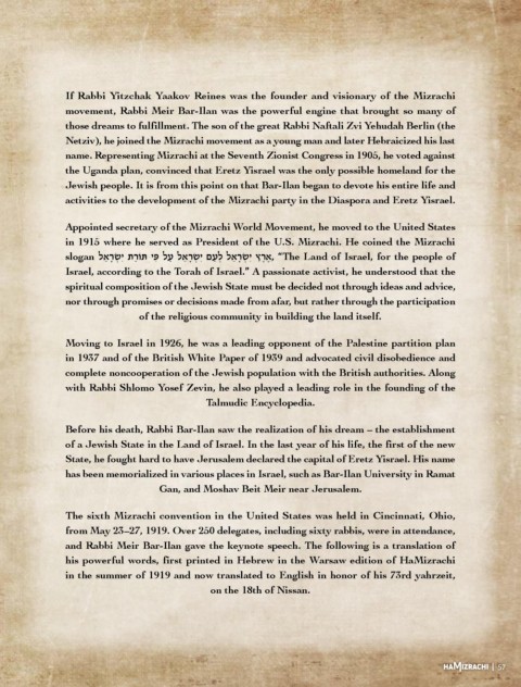 movement, Rabbi Meir Bar-Ilan was the powerful engine that brought so many of