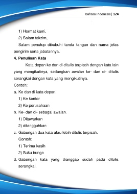 yang mengikutinya, sedangkan awalan ke- dan di- ditulis