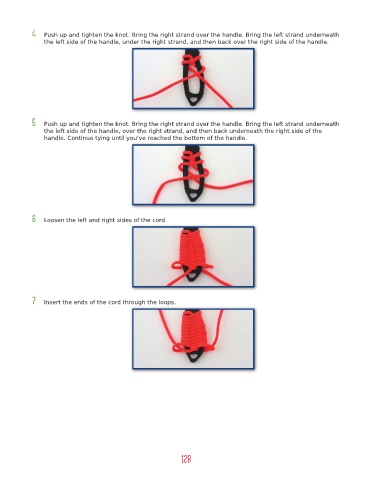 5 ush up and tighten the knot. Bring the right strand over the handle. Bring the left strand underneath