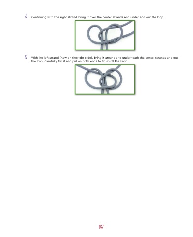 4     Continuing with the right strand, bring it over the center strands and under and out the loop.