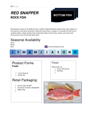 Red Snapper, known for its bright red skin, is Katie's Seafood Markets signature fish. Red snapper is a