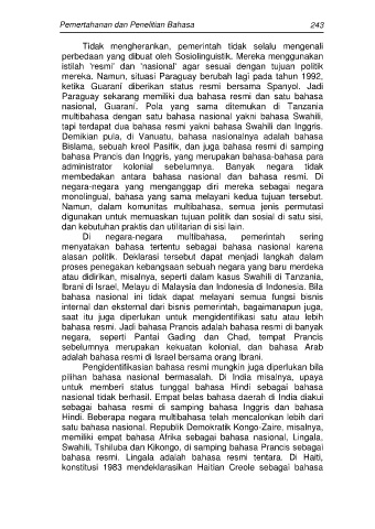 Pemertahanan dan Penelitian Bahasa 243