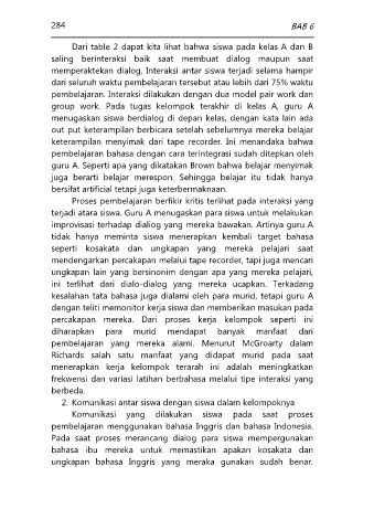 memperaktekan dialog. Interaksi antar siswa terjadi selama hampir