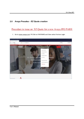 3.0 Cisco IPT 2.0 Avaya Presales – EZ Quote creation Procedure to issue an EZ Quote for a new Avaya IPO PABX 1. Go to www.avaya.com Click on PARTNERS and then select Partner Login User’s Manual