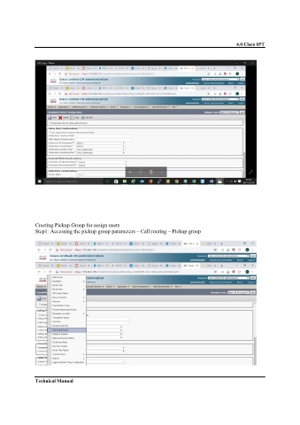 4.0 Cisco IPT Cresting Pickup Group for assign users Step1: Accessing the pickup group parameters – Call routing – Pickup group Technical Manual