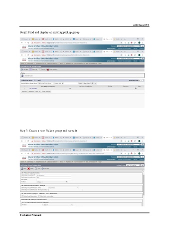 4.0 Cisco IPT Step2: Find and display an existing pickup group Step 3: Create a new Pickup group and name it Technical Manual