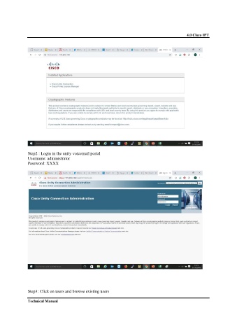 4.0 Cisco IPT Step2 : Login in the unity voicemail portal Username: administrator Password: XXXX Step3: Click on users and browse existing users Technical Manual