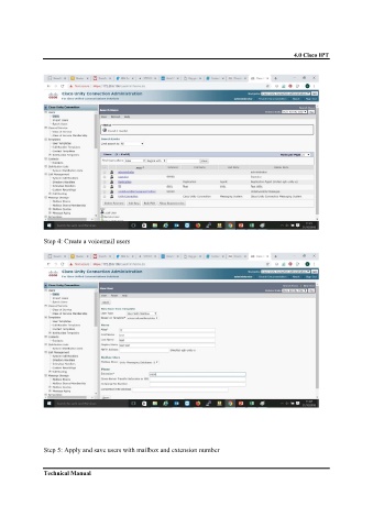 4.0 Cisco IPT Step 4: Create a voicemail users Step 5: Apply and save users with mailbox and extension number Technical Manual