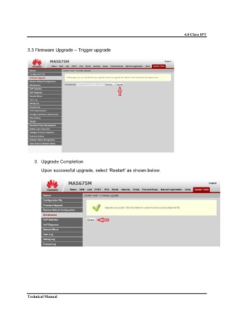 4.0 Cisco IPT 3.3 Firmware Upgrade – Trigger upgrade 3. Upgrade Completion Upon successful upgrade, select ‘Restart’ as shown below. Technical Manual