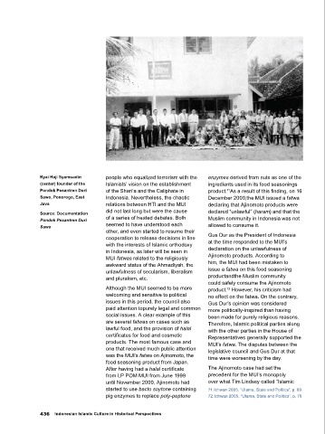 pig enzymes to replace poly-peptone 72. Ichwan 2005, “Ulama, State and Politics”, p. 70. 74. Lindsey 2012, “Monopolising Islam”, p. 268. 75. Lindsey 2012, “Monopolising Islam”, p. 267.