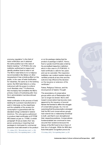 in Indonesia, as later will be seen in declaration on the unlawfulness of sector, the MUI halal fatwa is a ruling certificate. 75