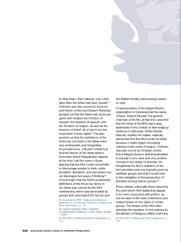 thought, the freedom of speech, and that the fatwa of the MUI was a step Islamic organizations that openly or Indonesia.