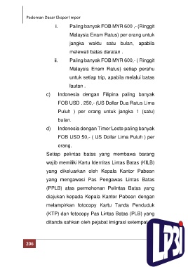 i. Paling banyak FOB MYR 600 ,- (Ringgit