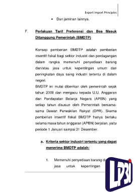 F. Perlakuan Tarif Preferensi dan Bea Masuk