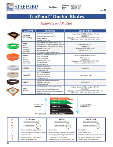 POLYESTER Reduces Back Doctoring Profiles: Straight, Bevel