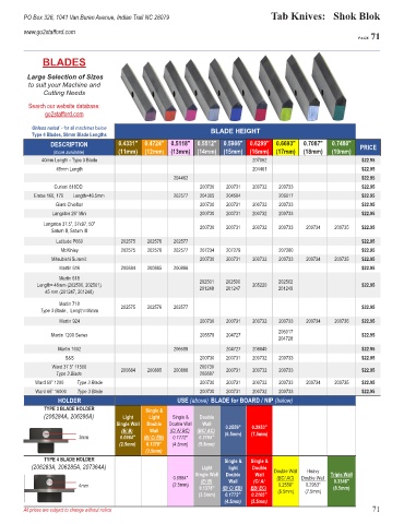 PO Box 328, 1041 Van Buren Avenue, Indian Trail NC 28079                   Tab Knives:   Shok Blok