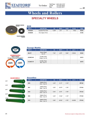 PART # DESCRIPTION OD WIDTH DURO COLOR PRICE