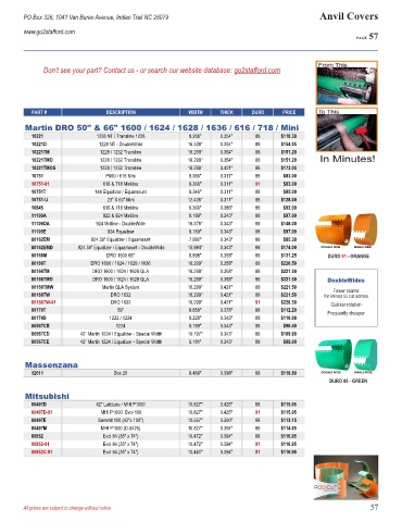 PART #                DESCRIPTION              WIDTH     THICK     DURO     PRICE